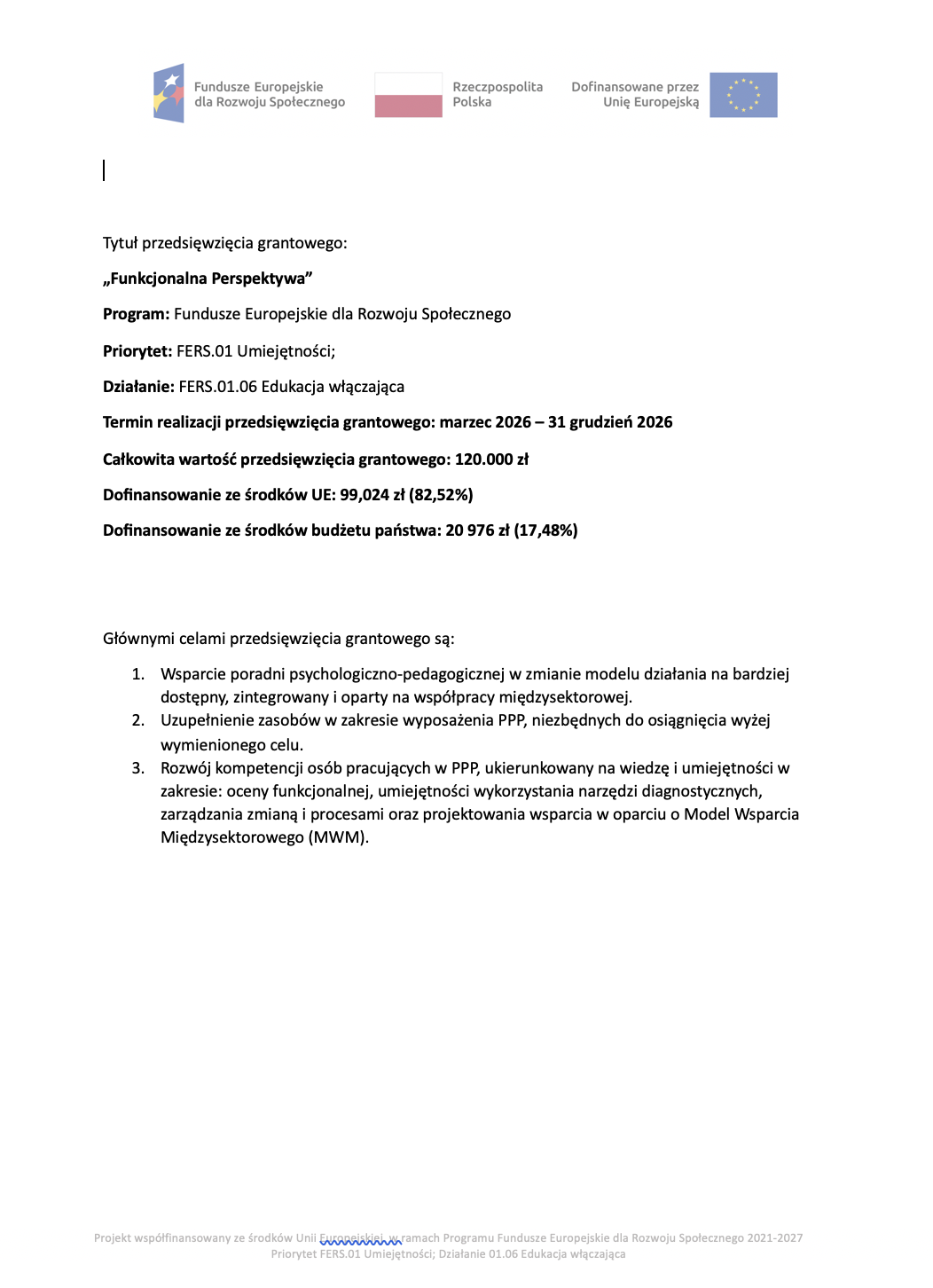Projekt jest współfinansowany z Funduszy Europejskich dla Rozwoju Społecznego oraz ze środków budżetu państwa.